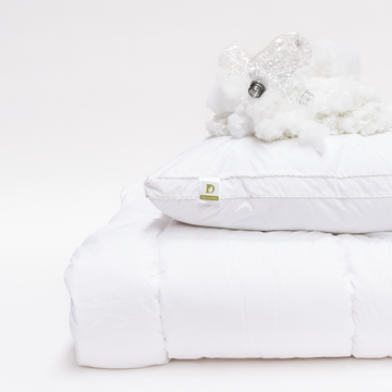 DreamGreen® reimagines that experience — transforming recycled plastic bottles into ultra-fine, silky microfibres that deliver the same plush, sink-in feel of feather and down, without the cruelty, cost, or compromise.